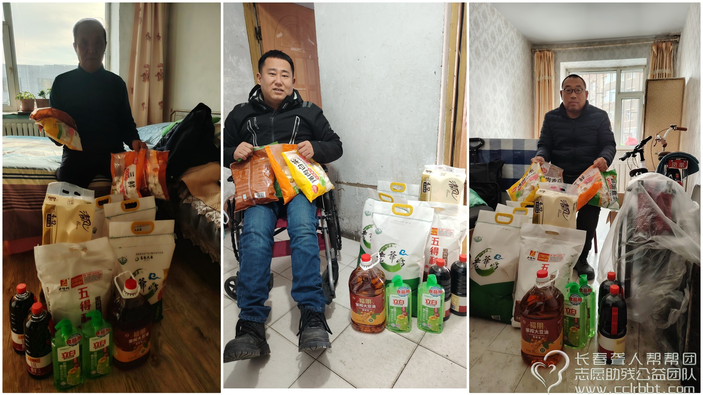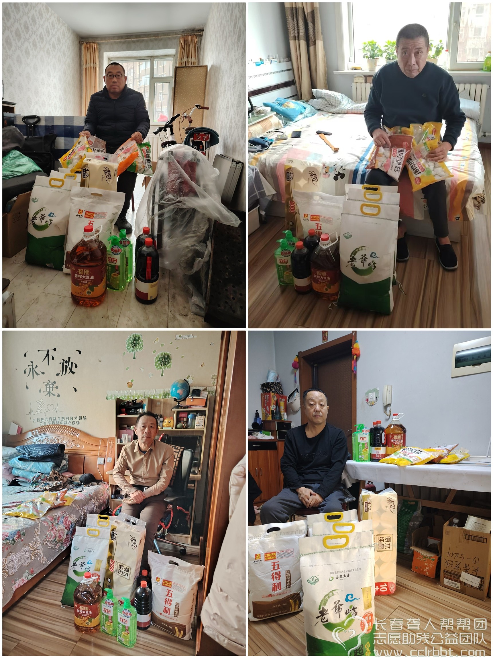 长春聋人帮帮团志愿助残公益团队2024年第12期(总第121期)扶残助残“阳光行动”,为10户肢残人家庭捐赠总价值三千多元的米面油等生活必需品。